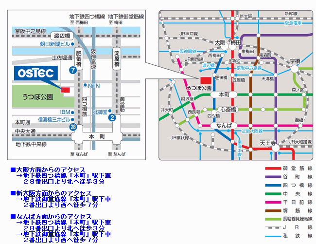 【電車】 Osaka Metro 四つ橋線本町駅下車 28号出口より北へ徒歩5分 Osaka Metro 御堂筋線本町駅下車2号出口より西へ徒歩8分.